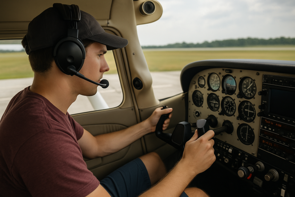 This is the moment where your airplane goes from quiet metal to something alive and responsive. When you start the engine, you listen for the familiar rhythm you’ll eventually be able to detect instantly — a smooth hum, the right RPM, stable oil pressure rising into the green. This is where you learn to feel the airplane. The cockpit vibrates, the prop spins, the gauges wake up. You’re now managing a machine that demands attention, and that attention becomes second nature over time. Starting the engine reminds you that flying is both art and engineering. You’re the human in the loop, bringing everything together.